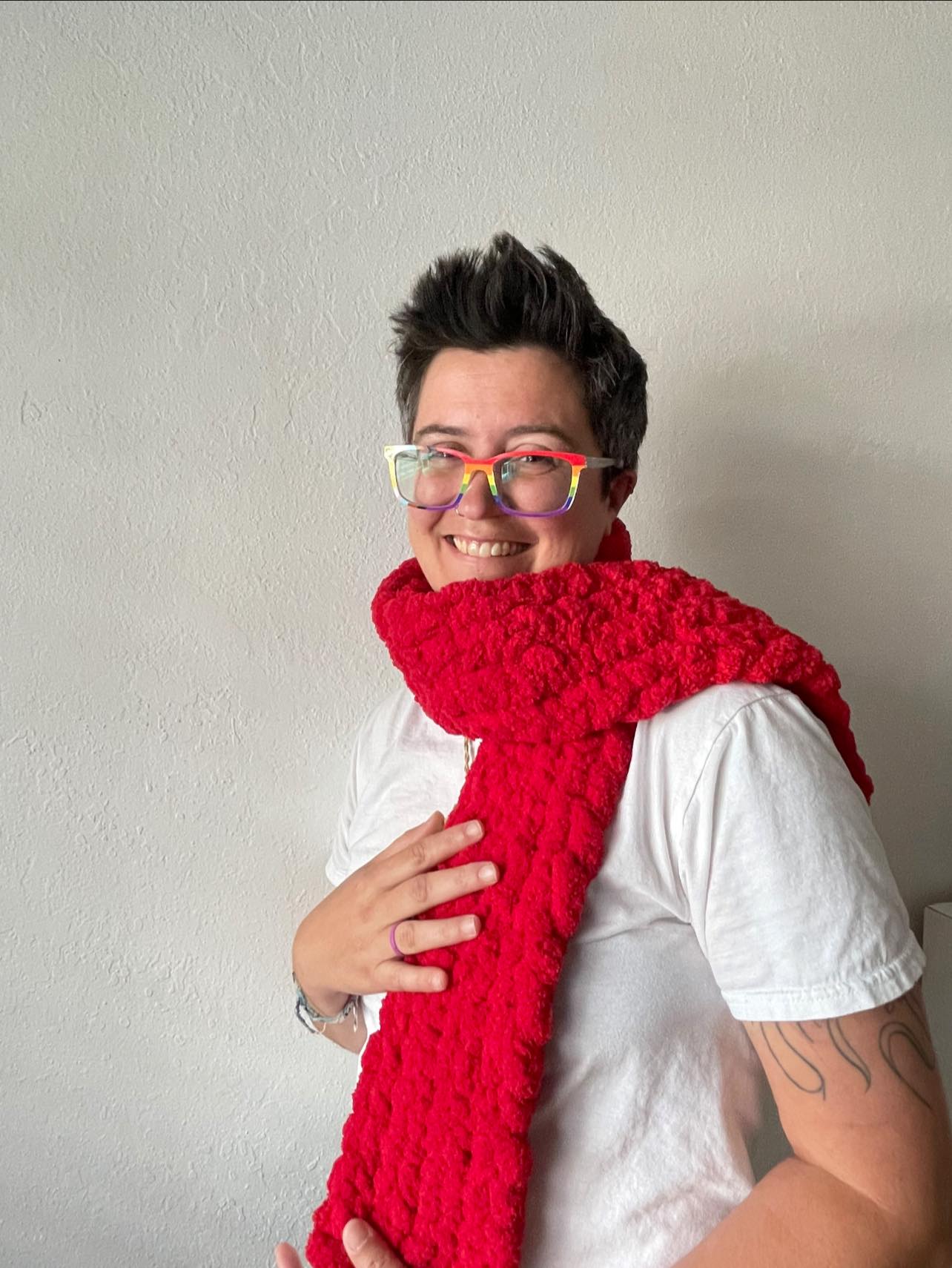 Our handmade open-end scarf is the perfect blend of softness and style. Crafted with chunky, high-quality yarn, it offers the warmth you crave and the versatility you love. Whether you're layering up for a chilly morning walk or adding a cozy touch to your outfit, this scarf drapes beautifully and feels like a hug. Each piece is lovingly made by hand, inspired by the comfort and companionship of our rescue pups, Dapper and Kai.